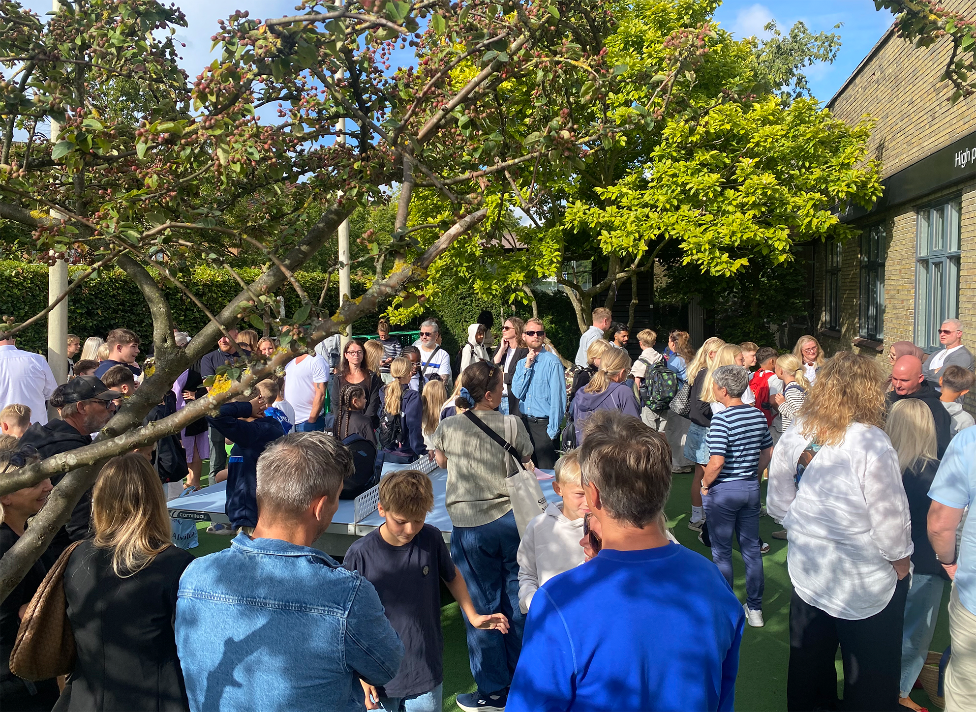 Skolelederen bød velkommen, og der blev råbt tre flotte hurraer, så det rungede mellem husblokkene i Ryparken.
